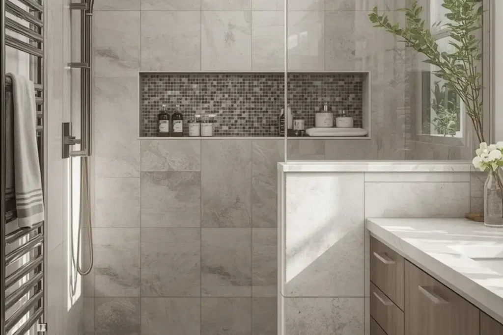 They can also hold built in storage. Adding niches into the wall gives a place for soap, shampoo, and other items without needing extra shelves. This keeps the design clean and simple.