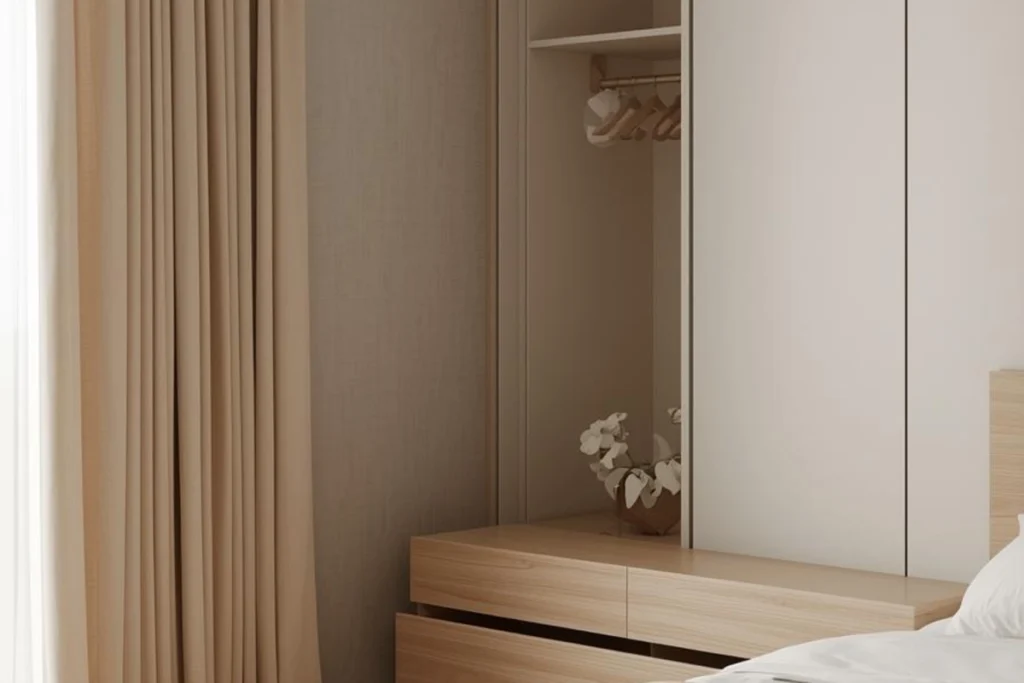 I’ve often told clients that a minimalist bedroom does not mean everything must be visible. Hidden storage keeps the room looking calm while still making daily life easy. When clothes, books, and daily items have a clear home, the bedroom feels like a true retreat.