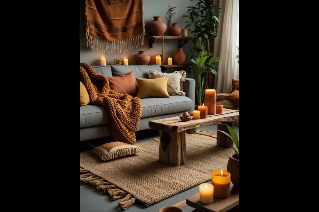 Most people rush into painting or buying new chairs. But a true Boho living room doesn’t begin with objects. It begins with how the space feels. Texture speaks first. Think of thick woven throws, handmade fabrics, nubby rugs, and uneven clay pieces. These give your room depth before you even decide on the palette.