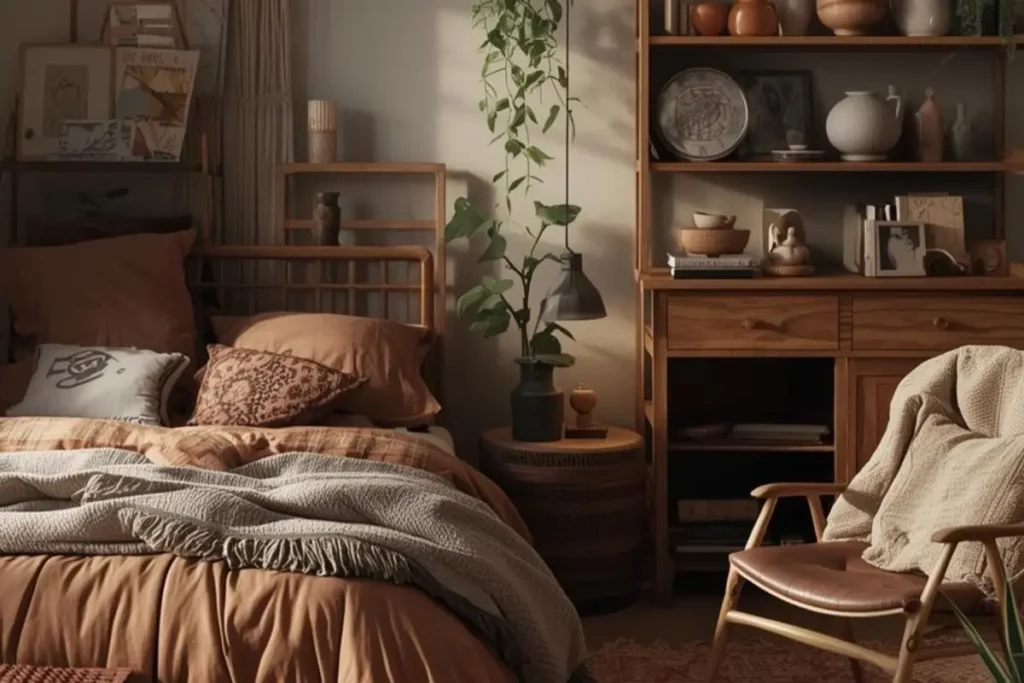 Over time, those layers become the soul of the room. Mix old and new pieces. Put a vintage chest next to a modern bed frame. Add a soft throw at the foot of the bed and a plant that grows a little wild in the corner. A maximalist boho room isn’t about more things. It’s about more feeling.