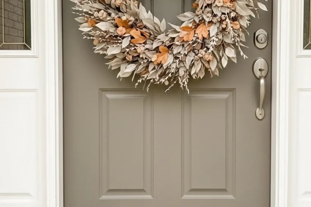 5. Soft-Tone Wreaths for a Calm Entryway