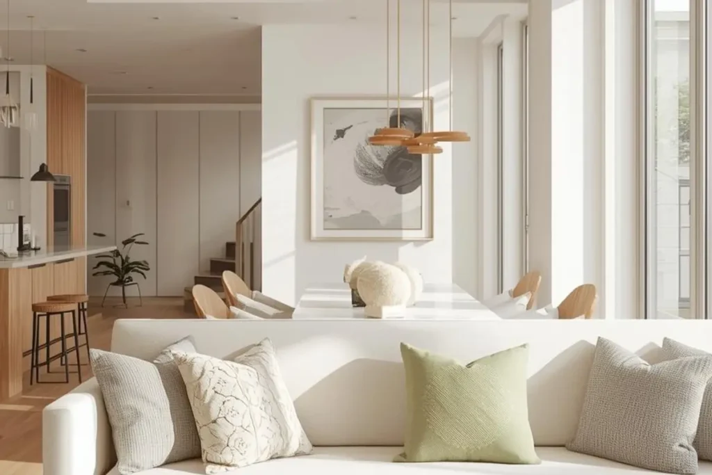 A daybed can make a small living room feel larger. It takes up less visual space than bulky sofas but still gives you plenty of seating. Pick one with an open frame or simple wood legs so light can move around it easily. Light-colored upholstery, like beige or gray, keeps the space calm and airy. You can place a slim coffee table in front and a rug underneath to anchor it. This setup looks neat and feels balanced even in a tight layout. It’s a simple trick to make your space feel open while staying comfortable.