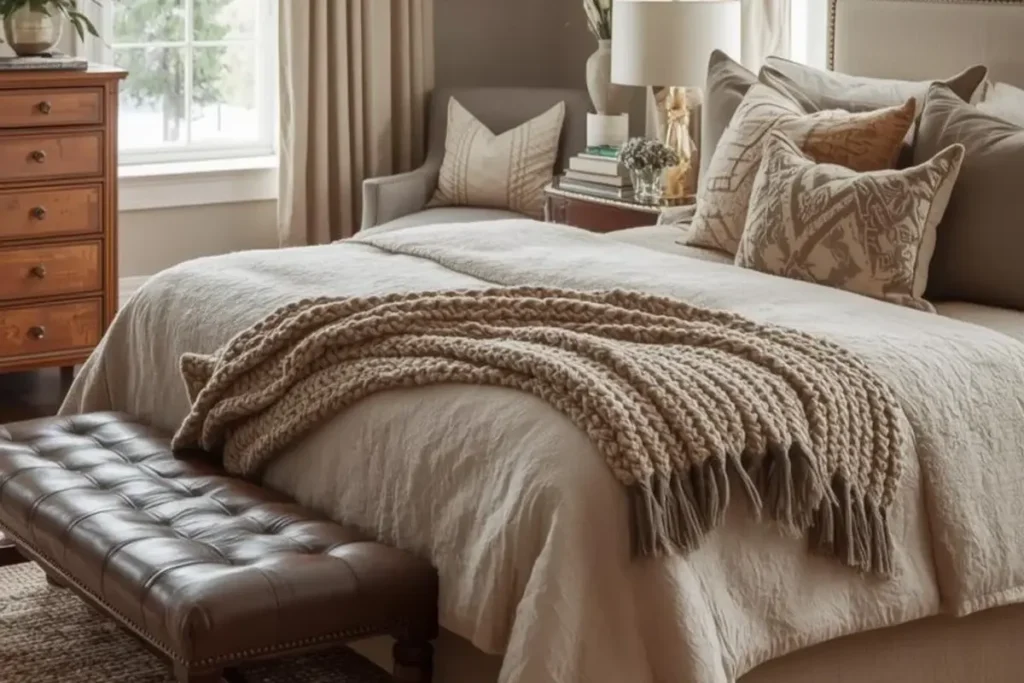 Bedding is another place where texture makes a difference. A knit throw blanket, a quilt, or velvet cushions can make the bed look inviting. The goal is not to add more items but to combine a few materials that feel different to the touch.