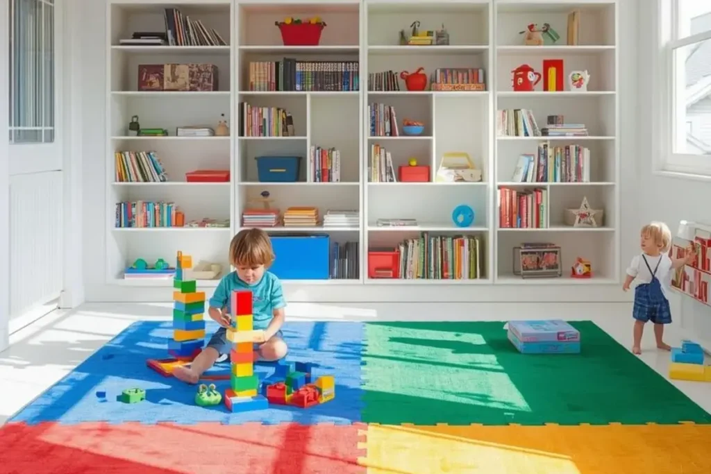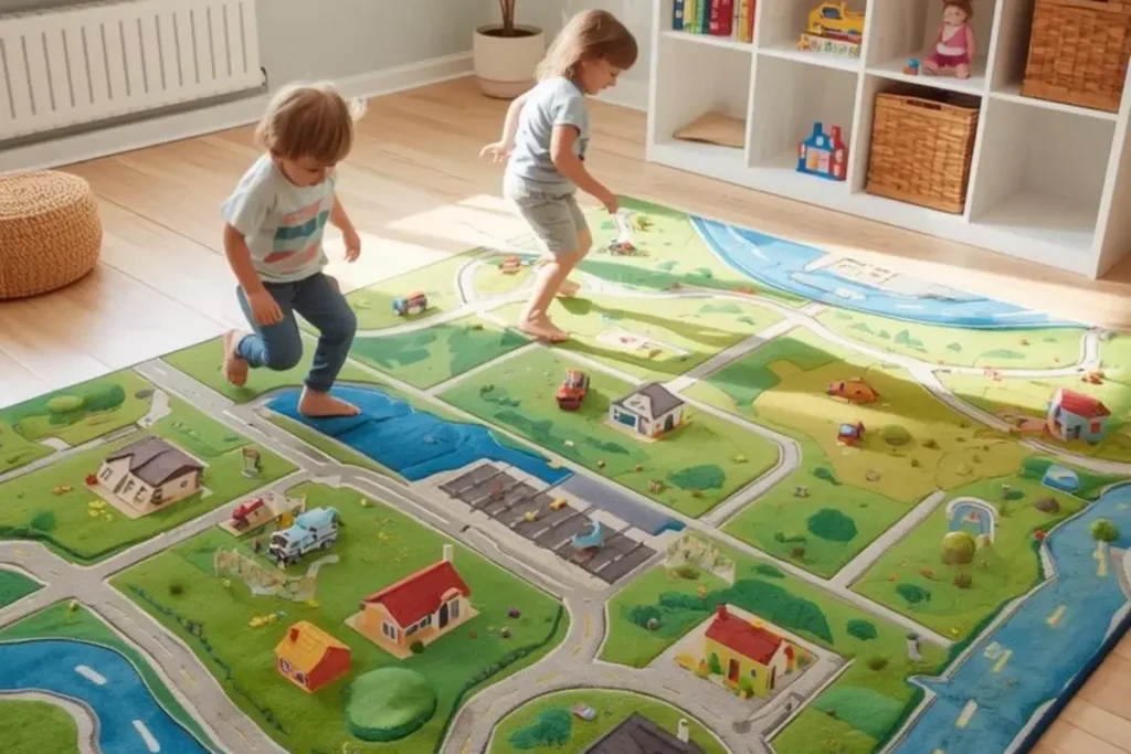 Interactive rugs combine design with purpose. From city street maps to hopscotch patterns, these rugs are made for active play. The colors are usually vibrant—greens for grass, blues for water, and yellows for pathways—so kids feel immersed in their games. A cityscape rug encourages driving toy cars around, while a hopscotch rug turns the floor into an instant playground. These rugs reduce the need for extra toys since the design itself inspires activity. Parents appreciate that the rug doubles as entertainment while keeping play structured and safe on a soft surface.