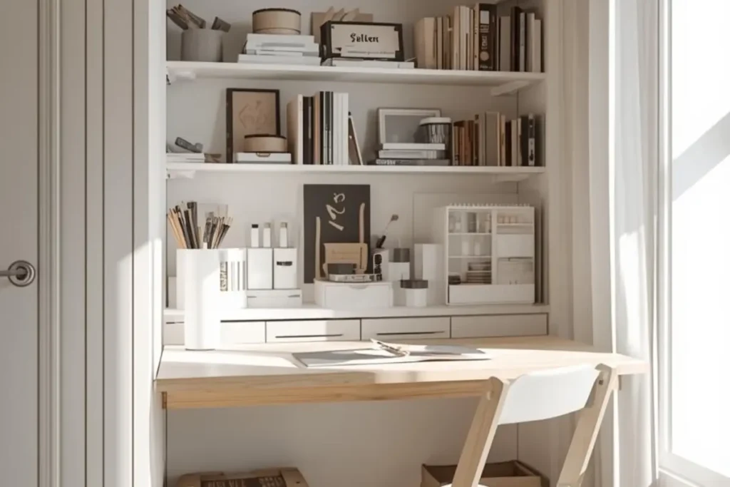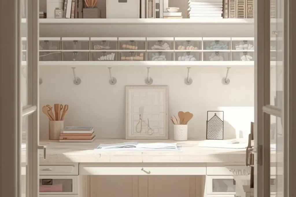The idea is to keep your creative tools ready but not in the way. This lets you use your living area or bedroom for daily life while still having a dedicated crafting spot. With this setup, you don’t need to give up your whole room—just make one side flexible.